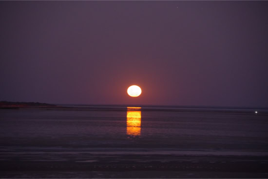 About 3 or 4 times per year the moon rises a little after sunset - and if this also co-insides with a high tide - the a weird pheromone occurs - it is called a stairway to heaven because the swell of the waves look a little like steps leading to the moon - this is a very rare occurrence that I planned for